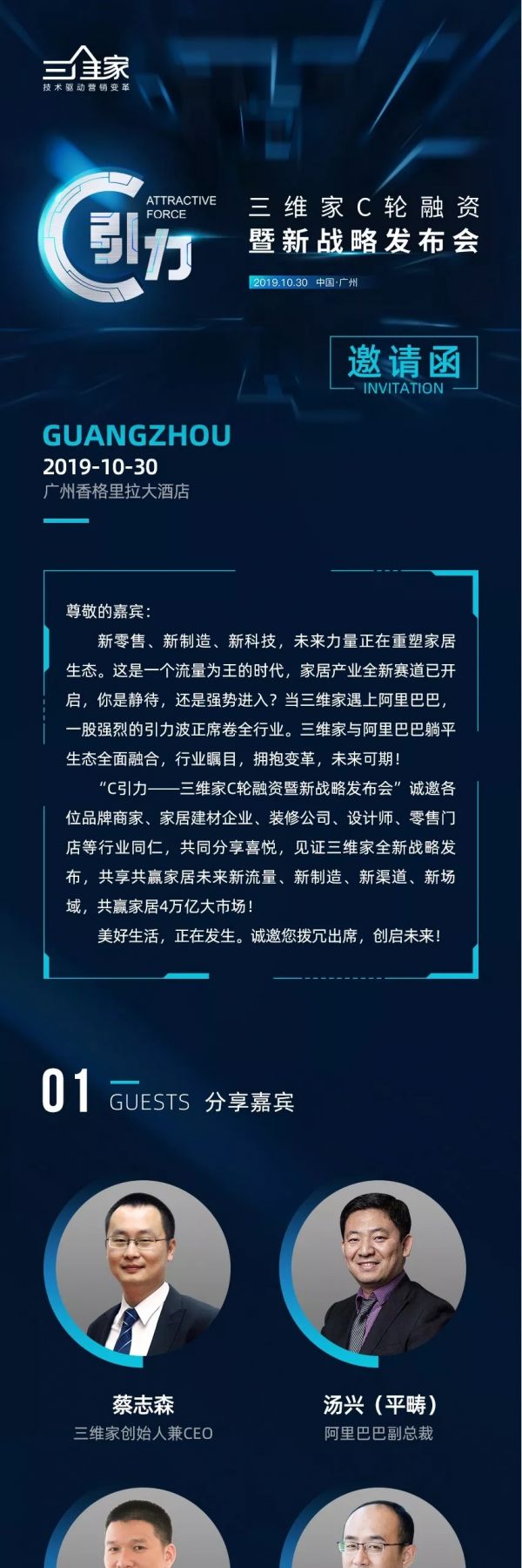 广东三维家信息科技有限公司获得阿里巴巴5亿元战略投资,这是三维家继2015年A轮融资、2018年B轮融资后,再次获得资本市场青睐。本轮融资完成后,双方将携手整合平台资源,给予行业全链路的数据赋能,构建良性的家居产业新生态。 这是阿里巴巴在家居家装行业新零售的积极探索和深度布局,同时也是三维家实现全渠道营销的初步战果。深耕家居行业6年,三维家持续发挥家居产业“路由器”的作用,与阿里巴巴强强联合,解决家居家装行业痛点,推动大家居行业的数字化、智能化发展。阿里巴巴的战略入股后,三维家将和躺平(阿里旗下智能家居平台iHome)设计家全面合作,共同构建家居产业F2B2C生态,共同服务门店B端和消费者C端,为消费者、设计师和品牌商家提供家居行业整体解决方案。三维家与躺平一起打造免费的内容制作器,将利用200多万设计师资源,以场景化导购的方式,为消费者带来“所见即所得”的一站式家居购物体验。三维家的合作客户也将能透过这一平台,精准触达C端消费者,提升卖货效率;并能精准掌握消费者喜好和动向,按需生产,提高产能利用率。这是三维家由“设计工具”向“全渠道销售解决方案服务商”的战略升级。早在今年7月,由三维家旗下子公司至爱智家和阿里共同赋能的家居新零售体验馆——桔至生活在青岛开业。桔至生活以全流程数字化的方式,链接全品类家居建材制造商,为消费者提供整装产品体验、下单、仓储、物流、安装等服务。三维家与阿里巴巴的战略合作,将为家居建材制造商、设计师、装企、门店提供全新的发展机遇。“阿里巴巴致力于让天下没有难做的生意,未来,三维家将与阿里携手,让家居产业的营销、设计、生产、交付更简单,更高效。”三维家创始人蔡志森表示,“如果说过去的6年多三维家只是为行业做了部分贡献,解决了家居产业数据互联互通的问题,那么三维家对产业更大的价值,是在未来。”广东三维家信息科技有限公司(简称三维家)成立于 2013年1月,是以家居产业为依托、依靠云计算、大数据和 AI 人工智能等多项核心技术打造的家居工业互联网平台,现已成功输出包括3D家居云设计系统、3D家居云制造系统、数控系统在内的SaaS工具矩阵体系,成为中国家居家装产业大数据中心之一。