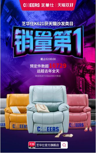 为了顺应新零售时代的到来,更好的服务消费者,芝华仕与天猫在新零售方面达成合作,通过利用阿里大数据分析,精准的洞察消费者背后的家居需求,更好的利用平台优势,将符合消费者需求的优质产品推向市场。2019年双十一,芝华仕集中发力,采用1元预约享受头等舱管家服务和瓜分千万家居好礼的活动形式,用优惠的价格、超值的赠品和高性价比的产品吸引了众多消费者的参与,成功斩获了同类产品的销售魁首。