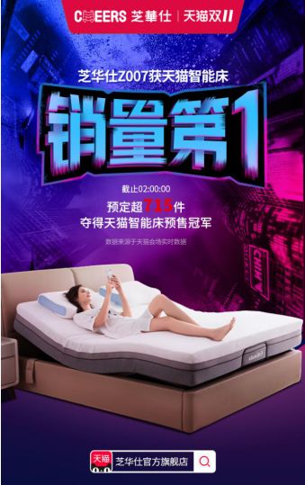 2019年10月21日0点,双十一预售活动全面启动,本年度极具影响力的购物狂欢节正式开启。截止15分20秒,全球知名软体家居品牌芝华仕头等舱创下开门红,芝华仕天猫旗舰店预售额破亿,同比去年快216小时,全店同比增长120%。预售活动开启后的两个小时内,芝华仕D026爱蒙静音乳胶床垫预定超14695张! 芝华仕头等舱真皮功能沙发K621预定超16729张!爆款单品依然强势夺冠;与此同时,芝华仕M2020按摩椅预定超1666件!引领卧室智能睡眠生活的Z007智能床预定超715件!成功拿下按摩椅和智能床类目预售销量第一。