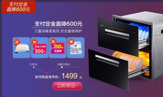 如,康宝ZTP128E-MT食具消毒柜,118升大容量,采用上下分层设计,上层采用的是臭氧和紫外线的消毒方式,下层采用的是红外线和125℃高温的消毒方式,消毒更好更彻底,其采用先进的整体发泡保温技术,热量不消散不泄漏。值得一提的是,此消毒柜设有智能童锁功能,从而避免了孩子意外触碰所造成的伤害,彰显了人性化。该消毒柜日常价2099元,10月21日~11月10日期间支付100元定金,并在双十一当天支付尾款,到手价仅需1499元,可谓非常划算。
