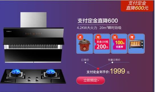 值得一提的是,日常价为2599元的康宝BE88+508烟灶套装,现参与投资健康计划,尽享直降600元的优惠,双11当天到手价1999元。