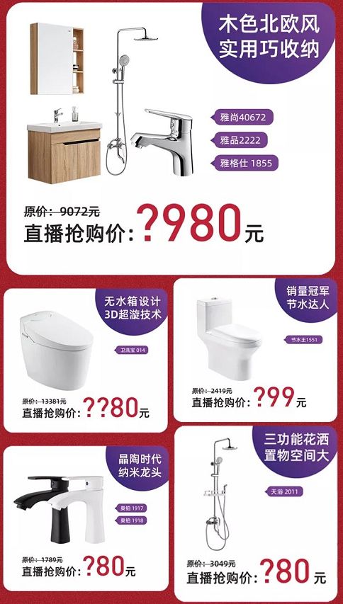 直播期间,东鹏整装卫浴的五大星品尖货齐汇聚,两大套餐等你来!