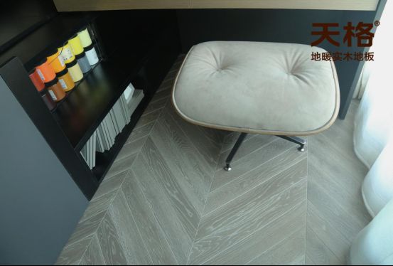 特别需要强调的是,此次案例中运用的天格“伯尔尼”地暖实木地板,在设计师的要求下,进行了时尚的“鱼骨拼”化,从而更加令人耳目一新。“鱼骨拼”工艺最早可源自于古罗马时代,其具有的独特装饰效果和人文魅力,始终长盛不衰。如今,潮流的轮回,再次将“鱼骨拼”地板带到时尚的前沿。然而在地暖实木地板领域,由于悬浮式铺装、同胀同缩的特点,一直以来都无法完美引入这一设计。为攻克这一堪称实木地板款型设计的顶级难关,天格集设计团队的智慧,历时数年时间,反复试验、不断改进工艺,终于在2019年7月成功研发出成熟的“鱼骨拼”地暖实木地板,此次用于《重新出发的家》可谓立刻爆红,高级感十足!