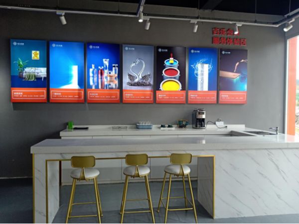 笔者随机前往这家建材超市体验,嚯~面积还真不小!四百多平方吧,什么涂料、墙布、瓷砖、地板、木门、洁具、卫浴一应俱货全,一进门就是吧台、书柜和休闲区,说是建材店,却像个咖啡馆。超市负责人胡经理说:这不是一家简单的家居建材店,而是为顾客提供居家妙招的生活馆,也是让人们休闲聚会的场所,卖货只是一种顺带的结果。据了解,这个所谓的第三空间,具备休闲、聚会、卖货三大功能,可以休息、闲聊,可以朋友聚会小坐发呆,品着咖啡、茶水,嚼着小吃,的确与众不同。为了吸引顾客,店里的咖啡、茶水、小吃只有专业咖啡馆、茶馆价格的一半,环境也很清新雅致,背景音乐轻柔舒缓,三人一伍、五人一群,比较放松随意。