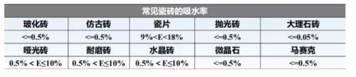 瓷砖的吸水率越低,意味着瓷砖越致密,要求选择吸盘作用越好的瓷砖胶,也就是级别高的瓷砖胶。