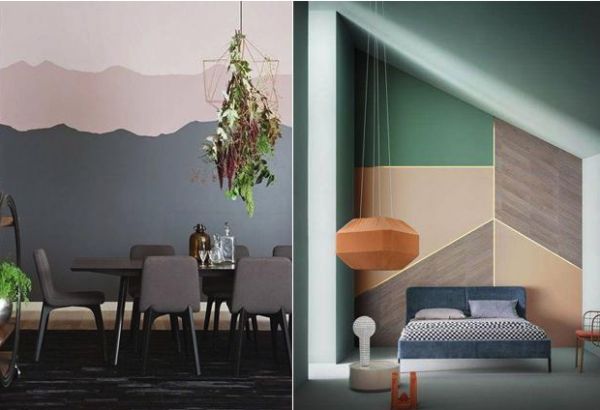 按照自己喜欢的颜色选几桶环保水漆,发挥自己的想象,在墙面上刷刷刷吧!担心自己想象力不够会把墙面毁了的,可以提前规划好图块,然后用不同的颜色,渐变or撞色都可以,将颜色填充进去也能收获意想不到的效果。
