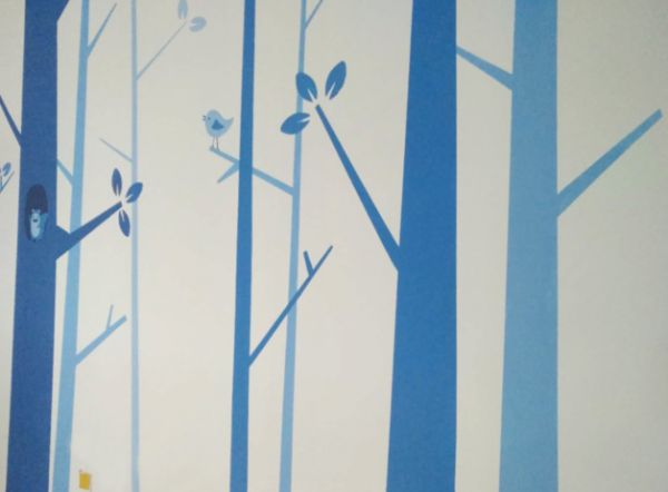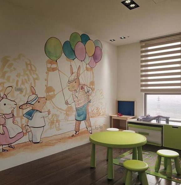 2、 另外一种是针对一些比较特殊的空间进行针对性绘制,比如阳光房可以在局部绘制与太阳、花鸟为主题的画等。