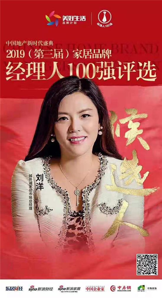 新浪家居讯由乐居财经、新浪财经、新浪家居、中国企业家、中房网联合主办,中国房地产业协会、中国物业管理协会、全国工商联家具装饰业商会共同指导的“家国同梦——2019年(第三届)中国家居经理人评选”活动正式启动。城外诚市场总经理刘洋获媒体提名,进入“2019中国家居品牌经理人100强”评选。