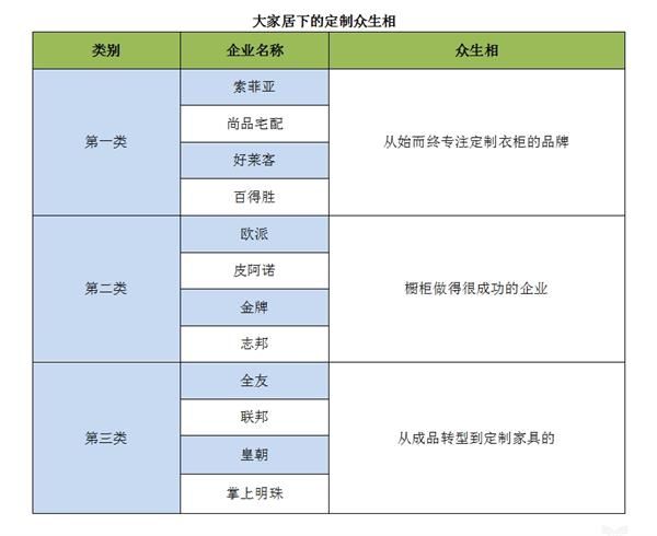 第一类,从始而终专注定制衣柜的品牌。这一类已经走在了行业的前列,引领着这个时代的步伐,比如:索菲亚、尚品宅配、好莱客、百得胜等等。