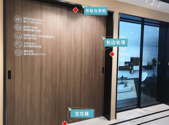 吊轮,是让人毫不费力地移动门的一个“秘密武器”,你很难看到它,但它却钻进了你几乎看不见的细缝里,起到轻松开门并节省空间的作用。