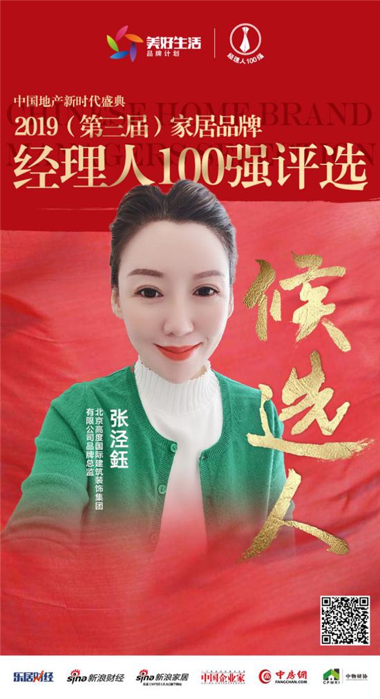 新浪家居讯 由乐居财经、新浪财经、新浪家居、中国企业家、中房网联合主办,中国房地产业协会、中国物业管理协会、全国工商联家具装饰业商会共同指导的“家国同梦——2019年(第三届)中国家居经理人评选”活动正式启动。北京高度国际建筑装饰集团品牌总监张泾鈺获媒体提名,进入“2019中国家居品牌经理人100强”评选。