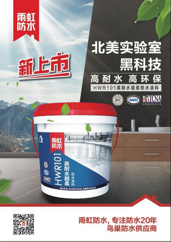 HWR101高耐水超柔防水涂料是一款耐水性能保持率在80%以上的双组份水性防水涂料,可应用于泳池、景观水池、消防水池等长期浸水环境。