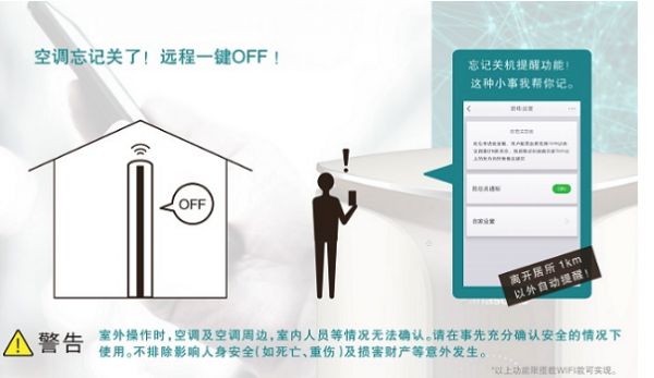 急于出门,忘记关掉空调,莫慌,松下空调不会造成隐患,远程一键OFF,迅速关掉主机,轻松开启下一段行程。家有老人幼儿,操作不甚熟练,身在外边的年轻人,可以随时随地手机掌控家中冷暖温度,开启清洁净化功能,智造舒适幸福生活。