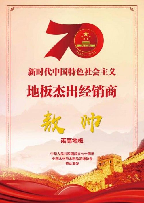 大会上,组委会因诺高地板对行业的特殊贡献,向诺高地暖实木地板总经理钟会冬先生授予“杰出人物”称号,向诺高地暖实木地板颁发“杰出企业”称号。这些沉甸甸的荣誉,都是对诺高最大的褒奖!