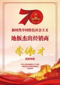 在大会中,组委会也表彰了新一代优秀经销商代表,向他们授予“杰出经销商”称号。诺高地板四大经销商田海情、夏荣灶、李伟才、敖帅荣获殊荣。他们兢兢业业、不忘初心,为行业谱写一次又一次全新篇章。