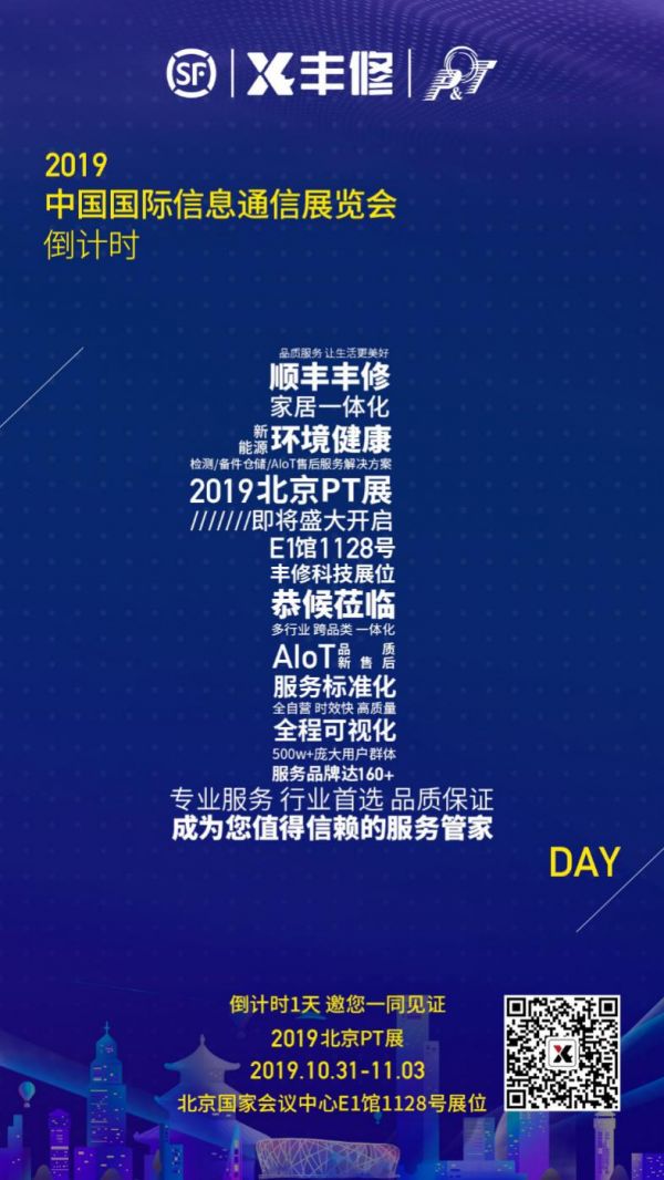可以看到,5G、AI与IoT相结合正在为用户带来更加完善的终端应用解决方案,迎合技术升级、消费升级的双驱动,顺丰旗下售后供应链服务品牌丰修亦致力于不断为消费者带来服务端的体验突破。无论是服务智能硬件产品的经验积累,亦或是丰修在维修性技术研究、设备投入、人才复用的深耕与沉淀,顺丰丰修均已具备了先发优势。本次PT展,顺丰丰修将携维修、家居一体化、环境健康服务、检测、备件仓储等一体化售后供应链服务解决方案亮相,实力卡位AIoT服务赛道。10月31-11月3日,欢迎莅临北京国家会议中心E1馆1128号顺丰丰修展位。围绕“售后服务方案+,驱动智慧新未来”,顺丰丰修副总裁张宗清还将出席于11月1日举办的ICT中国·高层论坛之“泰尔论坛”发表主题演讲,共同探讨5G+AIoT趋势下,如何引领品质新售后。更多精彩,不容错过!