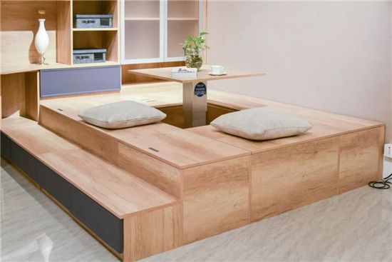 这是一张聚焦于生活里的智慧、温暖的“神奇桌子”,它的名字叫做“领尚家居榻榻米书香雅苑”。