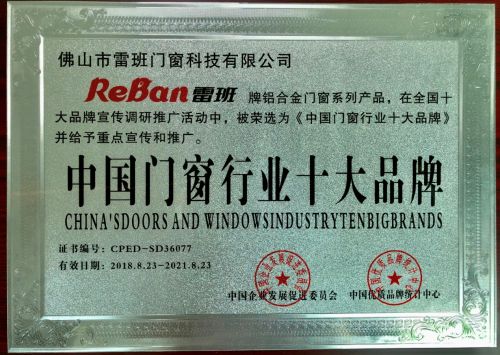 “中国门窗行业十大品牌”致力于推助企业品牌建设发展,旨在打造品牌消费、加盟代理第一参考依据,是全国铝合金门窗业的至高荣誉,获奖企业皆被业界公认为行业的丰碑。雷班门窗以优秀的产品和高质的服务,深受广大消费者的一致肯定与喜爱,不负众望地获得“2019中国门窗行业十大品牌”殊荣。