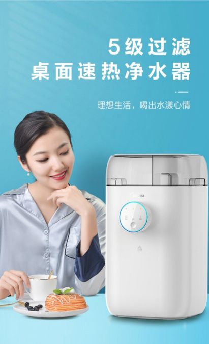 对于不想那么麻烦安装净水器的观众来说,也可以选择更加小巧便携的静饮一体机——美的静净净饮机,这是美的近期刚上市的一款新品。集净水器、饮水机、烧水壶、保温杯、温度计等多种功能于一身,速热直饮。特别适合精致的小女生以及家中有小孩的宝妈。在烈儿宝贝的直播间,不到千元就能拿下来。