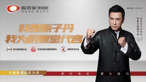 甄子丹倾心代言两大集成灶品牌之一的厨壹堂集成灶