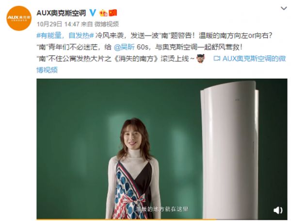 南不住视频上线!奥克斯空调携吴昕传递正能量