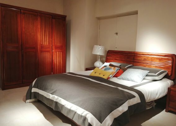 简约沉稳的中式大床,大气之中,蕴含内敛的贵气和雅致,气质由内而外,左右两个床头柜,即使简单搭配,也不会觉得单调。
