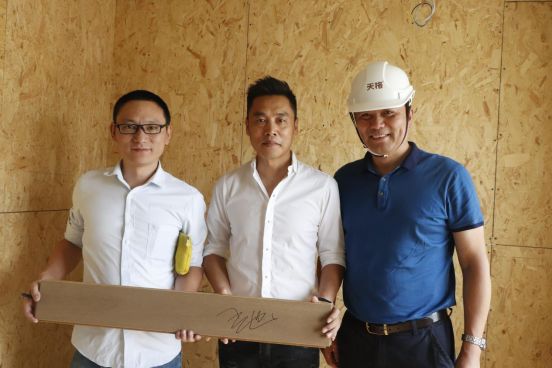 天格地暖实木地板获得孟也老师称赞,并签名留念