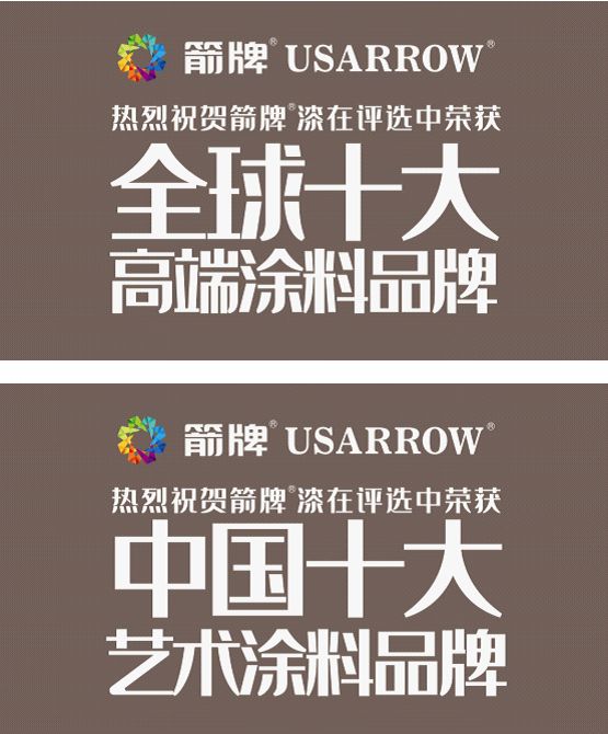 箭牌漆在激烈的品牌评选中脱颖而出,实力荣膺含金量极高的“全球十大高端涂料品牌”、“中国十大艺术涂料品牌”荣誉称号,充分彰显了品牌的竞争力与价值!