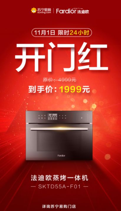 双十一惊爆福利!苏宁线下门店法迪欧蒸烤一体机限量抢