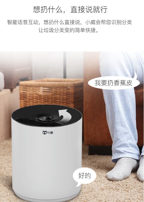 威林小威语音智能分类垃圾桶从“爱生活,‘趣’分类”的品牌理念出发,向大众传递环保理念。