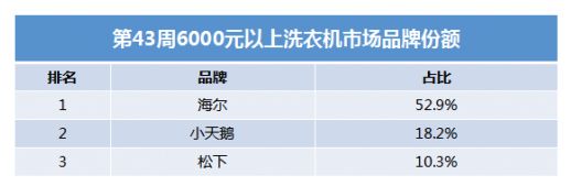 中高端洗衣机TOP3品牌合占8成:海尔以5成居第一