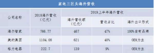 不过从长远来看,"海尔智家"这种出口创牌虽然见效慢,但是后劲强,现在也进入了收益期。"海尔智家"现在的海外业绩整体是"两位数"增长,2019年前三季度,"海尔智家"海外业务收入增长25%,海外收入占比47%,近100%为自有品牌。其他品牌也全线"飘红",欧洲市场,Candy在被收购后3季度业绩大幅上涨,增长22%;澳洲方面,斐雪派克以42%市场份额稳坐当地白电市场第一。