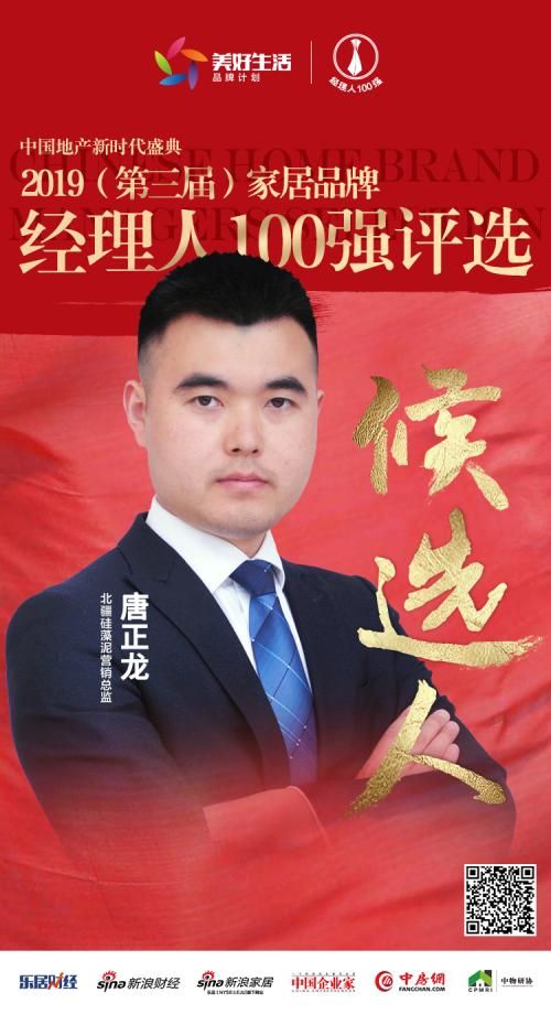 新浪家居讯 由乐居财经、新浪财经、新浪家居、中国企业家、中房网联合主办,中国房地产业协会、中国物业管理协会、全国工商联家具装饰业商会共同指导的“家国同梦——2019年(第三届)中国家居经理人评选”活动正式启动。北疆硅藻泥营销总监唐正龙获媒体提名,进入“2019中国家居品牌经理人100强”评选。