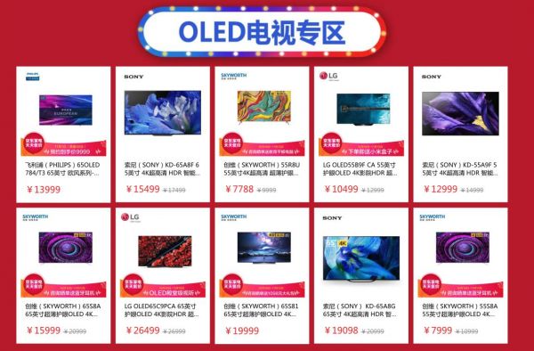 为了让大家都能购买到称心如意的OLED电视,各OLED电视厂商联合京东、苏宁、国美等家电销售渠道开展了多种形式的让利促销活动,不仅有京东一年一度的618大促,以及每月一次的京东“趣打开”促销活动,还有苏宁818发烧购物节,花样迭起的让利促销让消费者购的不亦乐乎。