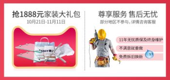 在预定的时间内还可以抢1888元的家装大礼包,尊享“不满意就重做”的贴心服务,免费拆旧换新,11年无忧质保终身维护。