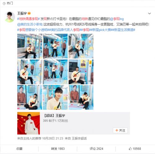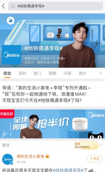 美的生活家电全民地铁偶遇李现,粉丝花式打卡上热搜