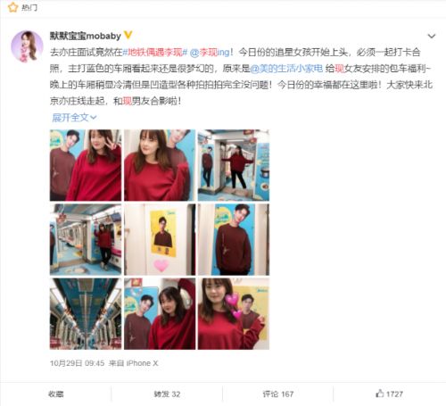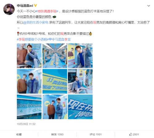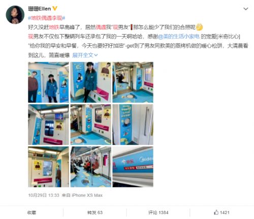 点进热搜才发现原来#地铁偶遇李现#,是指偶遇“美的生活小家电×李现”号。清新蓝色的车厢,不同造型的李现形象,还有各种暖心文案,瞬间点燃粉丝的少女心。各种冒着粉红泡泡的“恋情官宣”照,制造了一场全民地铁偶遇李现的热潮。目前#地铁偶遇李现#话题已经有5.3万的讨论量了,据小编目测将近6000+的天现宝宝参与了这场地铁偶遇。