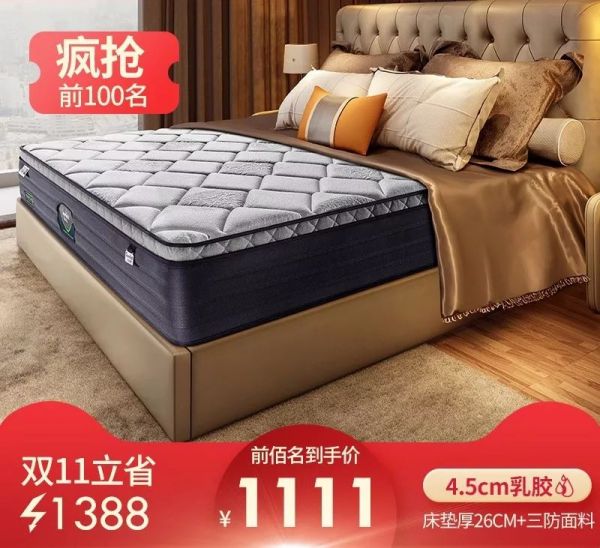 金海马芯动是19年双11杀出的黑马,细心的对比下,如此震撼的性价比。黑科技的银离子3防面料(官方对外是防泼水/防尘污/防螨抑菌);4.5CM厚的泰国乳胶,也是10款床垫里面最厚的一款;更重磅的是到手价才1111元;