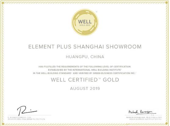 2019年10月31日,全亚洲首个WELL v2金级认证在Element Plus位于上海外滩金融中心内的旗舰展厅内被正式颁发,这标志着中国在智慧建筑领域中的消费升级与理念迭代,也体现了新一代家居产业从业者对于消费者健康的重视。