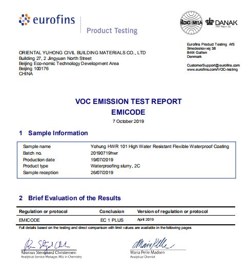 德国EC1PLUS环保认证,此认证对VOC(挥发性有机化合物)释放量,尤其是甲醛含量的限值要求更严格。雨虹HWR101高耐水超柔防水涂料,经过在北美实验室三年的潜心研发,TA诞生后即获得了三大认证,三大专利。