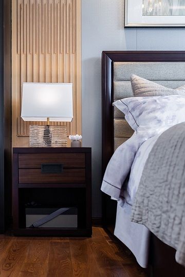 墙面的竹栅装饰,与Wave台灯的波纹水晶,形成前后呼应的立体美,让方正卧室不再沉闷