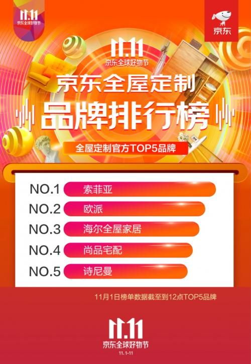 顺应时代重构生活,全面推进家电和家居融合的海尔全屋家居Haihome整装品牌迎来2019年双十一开门红。11月1日,京东双十一预售排行榜出炉,海尔全屋家居强势杀进全屋定制类前三,全新升级后的海尔全屋家居Haihome整装品牌告别过去售卖产品的传统模式,转型升级为以用户画像为驱动的生活空间方式提供者,迎来了市场大爆发。