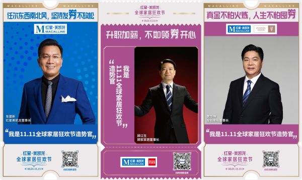 除了吸睛力爆棚的扎心海报和QUAN11天团,更让整个家居行业为之欢声沸腾的是红星美凯龙在线推出的“你就是11.11全球家居狂欢节造势官”H5。数百位家居行业大咖重磅助力,他们通过H5定制个性十足的专属造势海报,在朋友圈纷纷化身“造势官”,高频发布福利宣言,联手派送惊喜神券,合力制造家居行业11.11最强声浪。