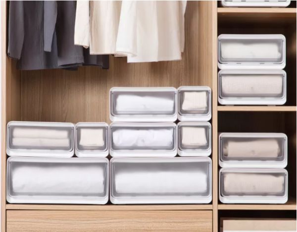 日常生活中常用的袜子、内衣,还有化妆品,你是怎么收纳的呢?摆放在衣柜、梳妆台上显得家里乱糟糟的,整齐叠放在收纳箱里使用时却不容易找到,茶花合加抽屉式储物箱,为你解决难题。
