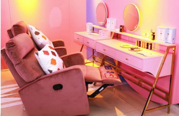 针对爱美的女孩,还有联合膜法世家打造护肤空间,粉色氛围满满的少女感,用最舒服的姿势敷最滋润的面膜,这大概就是爱美女孩梦寐以求的完美空间。