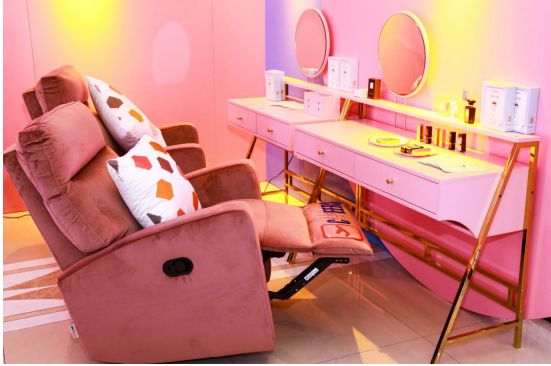 针对爱美的女孩,还有联合膜法世家打造护肤空间,粉色氛围满满的少女感,用最舒服的姿势敷最滋润的面膜,这大概就是爱美女孩梦寐以求的完美空间。