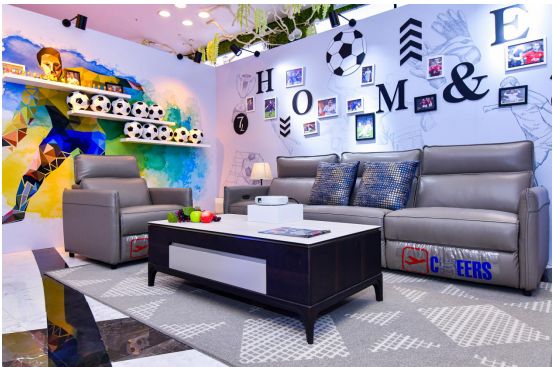 对于体育爱好者,还有联合坚果投影仪打造的看球装置空间,舒适沙发很过瘾,大屏看球够尽兴。