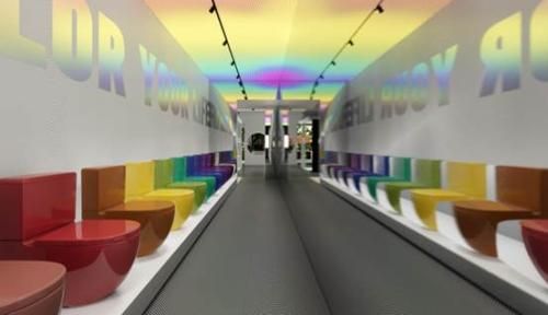 帝王洁具通过色彩搭配和情景植入,传递帝王洁具的“卫浴空间美学定制”核心理念,其中的彩色网红墙,将是不可多得的门店打卡地。