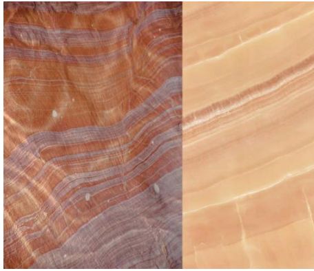 (天然地质纹理 VS 简一大理石瓷砖桔子玉)