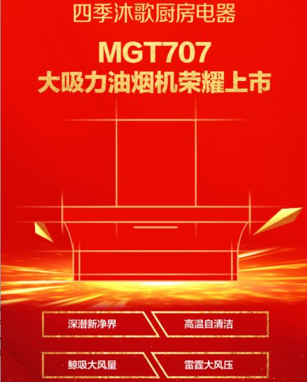 此次这款MGT707油烟机的上市,使得四季沐歌厨电旗下的潜吸机形成系列,有力地强化了四季沐歌在潜吸机这一新生的油烟机细分品类中的产品竞争力,进一步彰显出四季沐歌厨电在科技研发上的深厚实力,当然同时也为广大县乡市场的消费者提供了更多的营造清新厨房健康烹饪的优越选择。